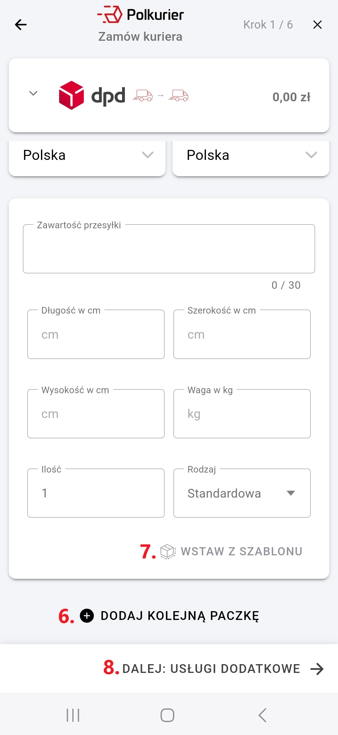 Złożenie zamówienia w aplikacji mobilnej Polkurier.pl